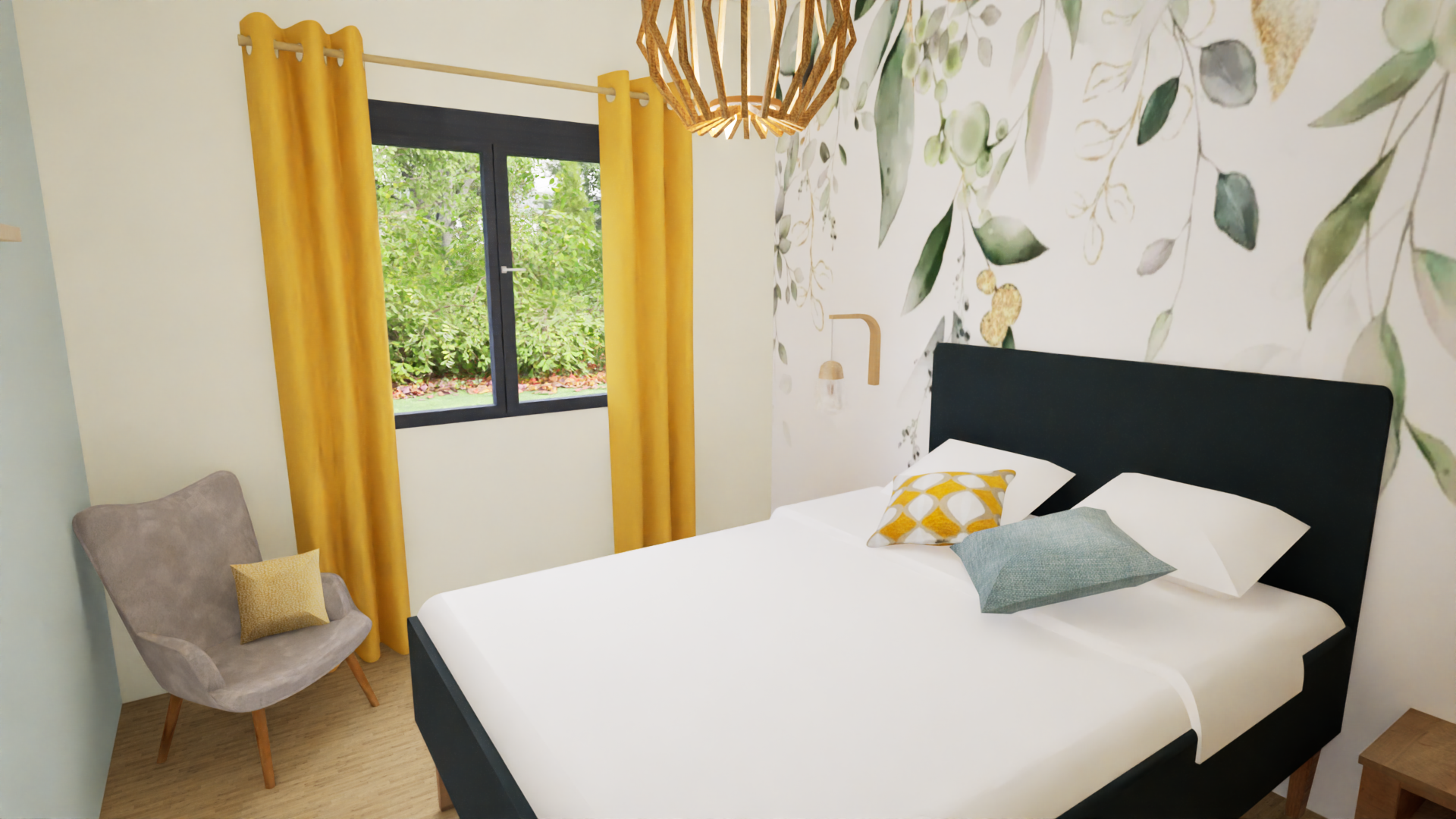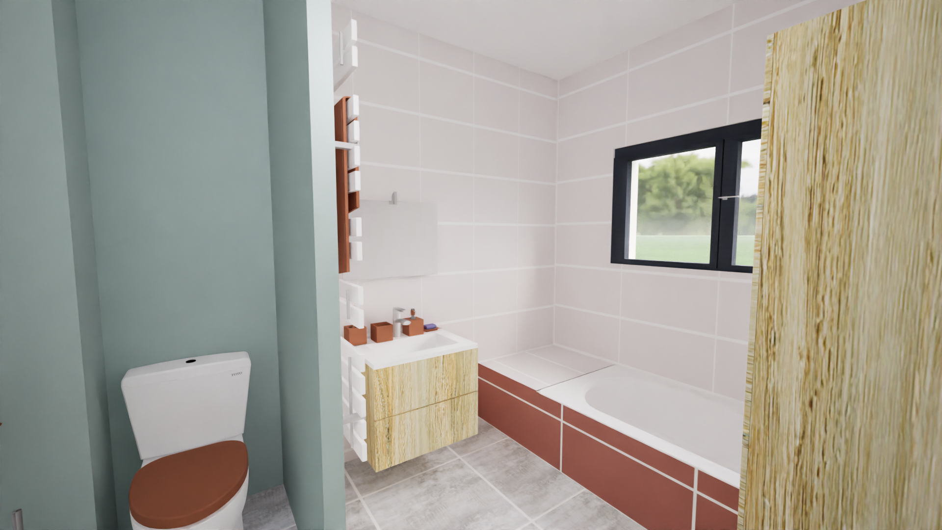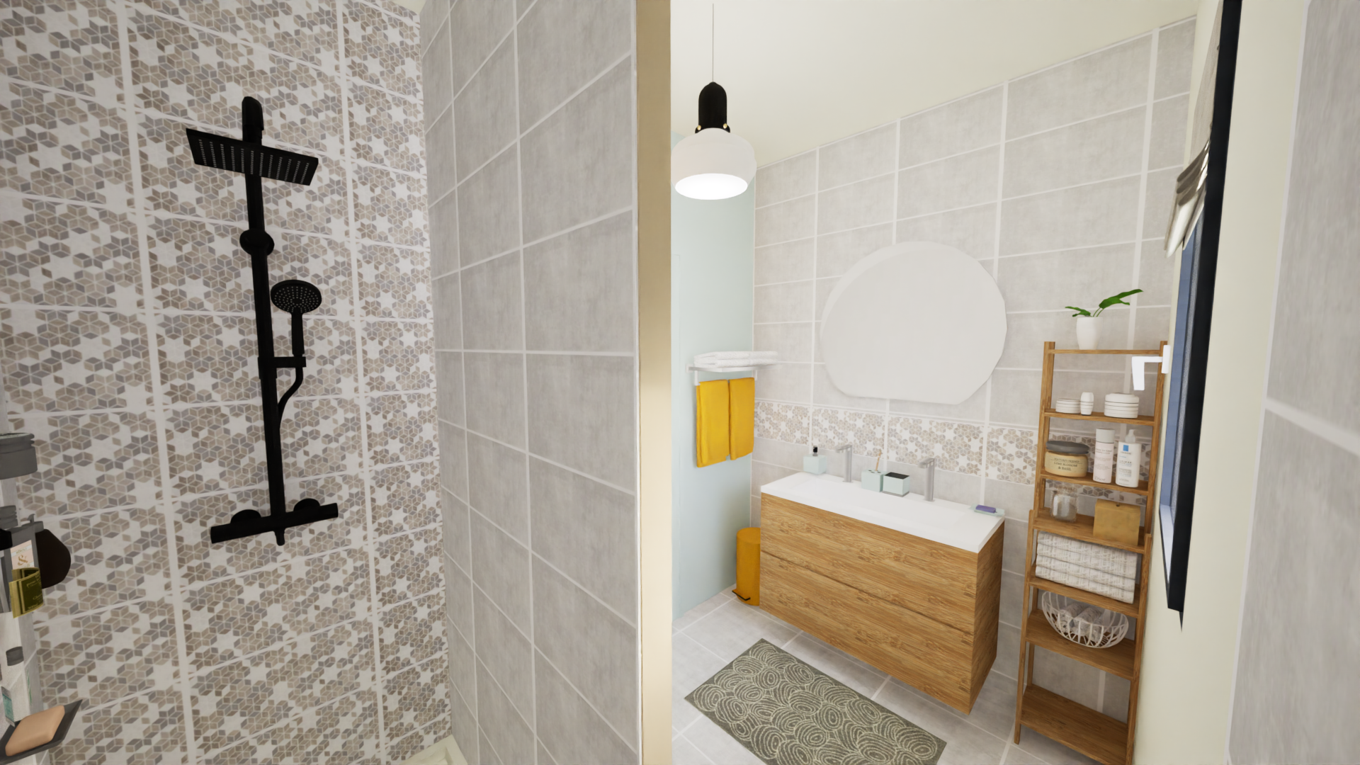 À partir des plans fournis, j’ai réalisé des modélisations 3D de chaque pièce concernée en y intégrant les meubles existants. Nous avons testé plusieurs configurations d’implantation pour s’assurer que les circulations restent fluides et que chaque meuble trouve sa place. J’ai ensuite présenté plusieurs ambiances visuelles (planches d’inspiration + nuanciers matériaux) pour aider les clients à choisir sols, revêtements et finitions.