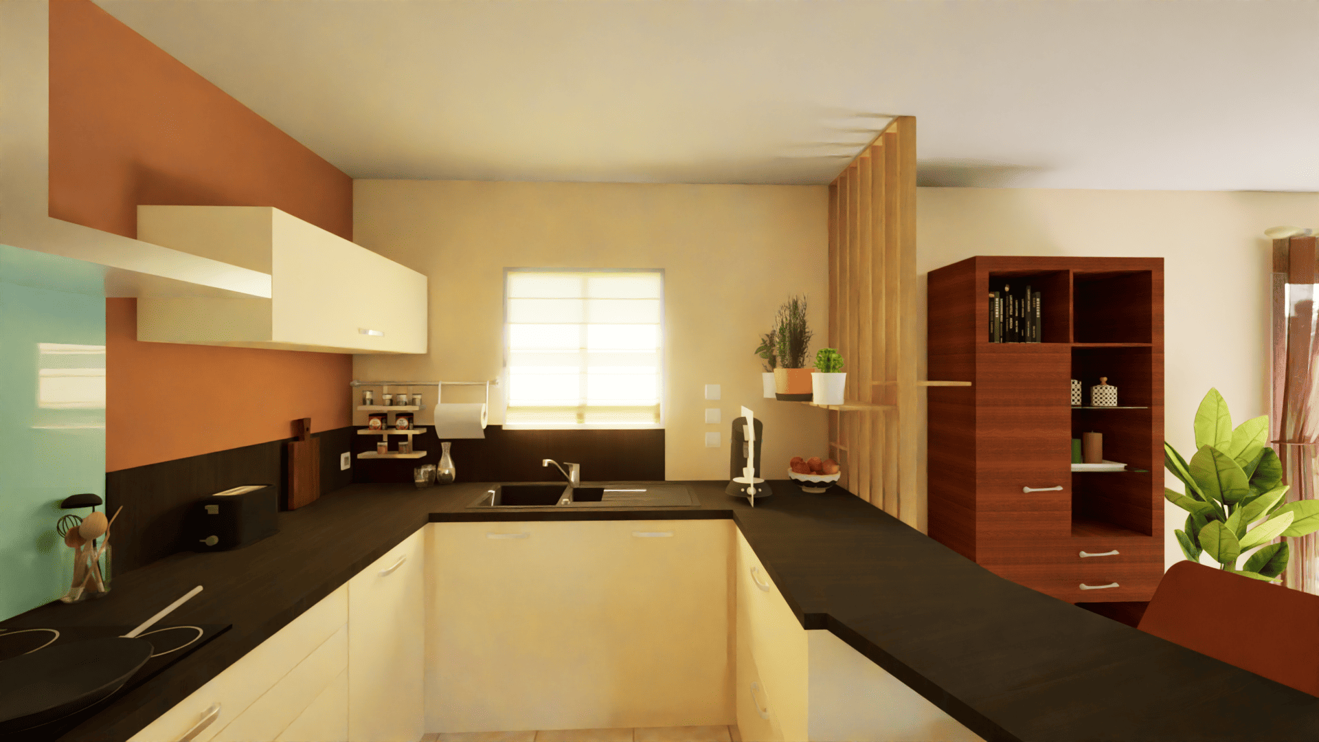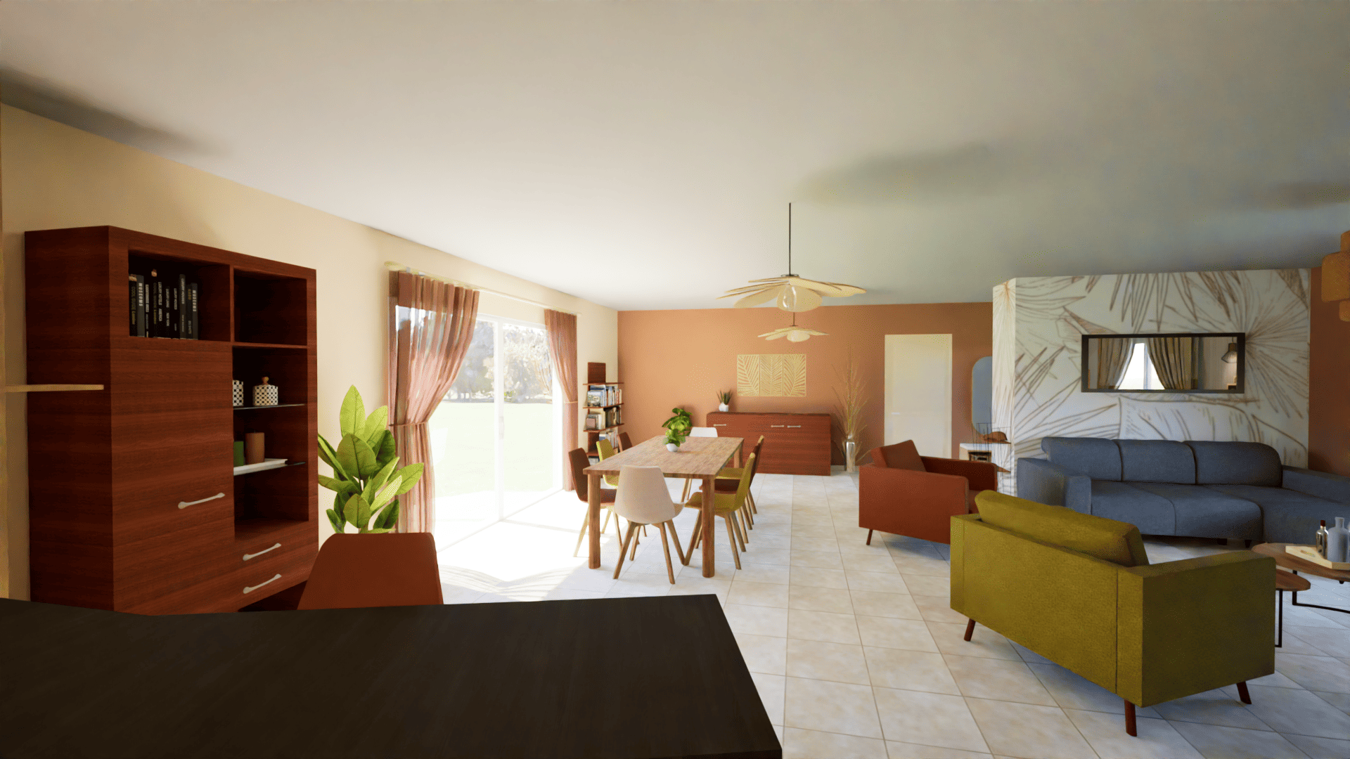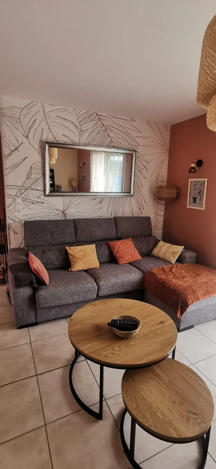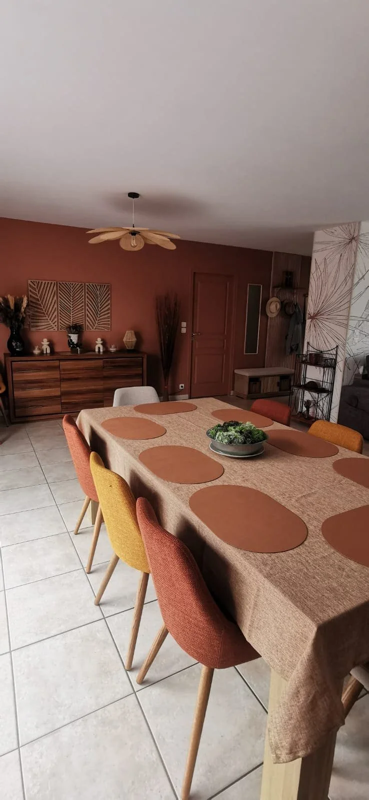 Une ambiance chaleureuse et conviviale, construite autour de couleurs chaudes aux tons orangés, de motifs végétaux et de matériaux naturels tels que le rotin et l’osier, pensée pour les moments de partage en famille et entre amis.