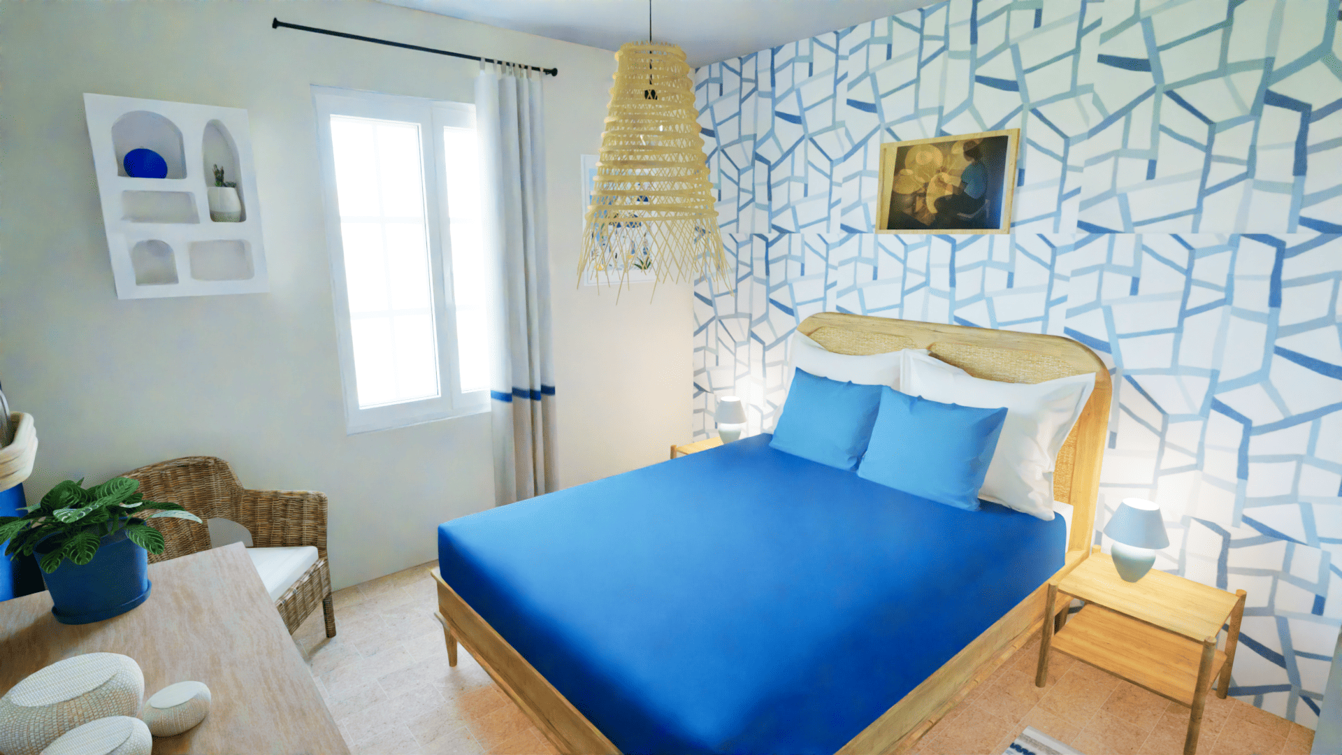 Une chambre imaginée à partir d’éléments existants que la cliente souhaitait conserver, pour créer une ambiance cohérente, accueillante et subtilement poétique, valorisant l’existant.